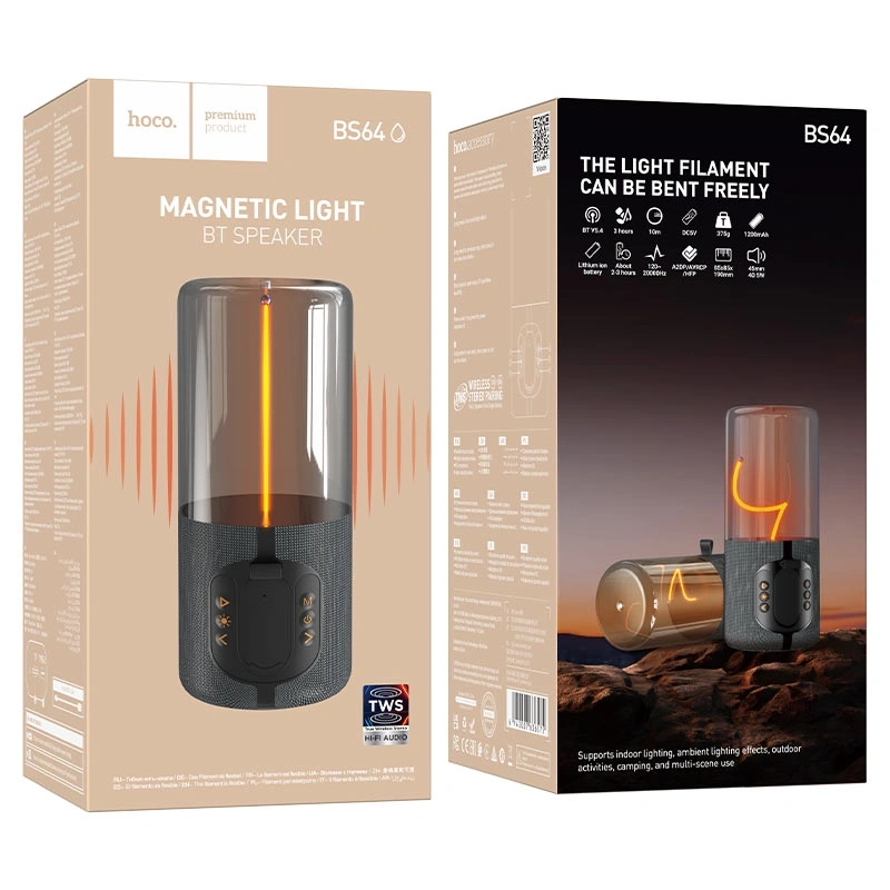 Experience sound and style in one compact device with the Hoco BS64 Magnetic Light Bluetooth Speaker. Designed for both audio performance and visual ambiance, this portable speaker combines powerful sound output with a unique flexible LED magnetic light—perfect for home, outdoor, or decorative use.