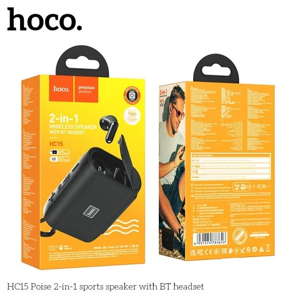 The Hoco HC15 is designed for ultimate flexibility, combining a portable Bluetooth speaker with a detachable wireless headset in one smart device. Whether you want to enjoy music out loud or switch to a more personal listening experience, the HC15 adapts instantly to your needs.