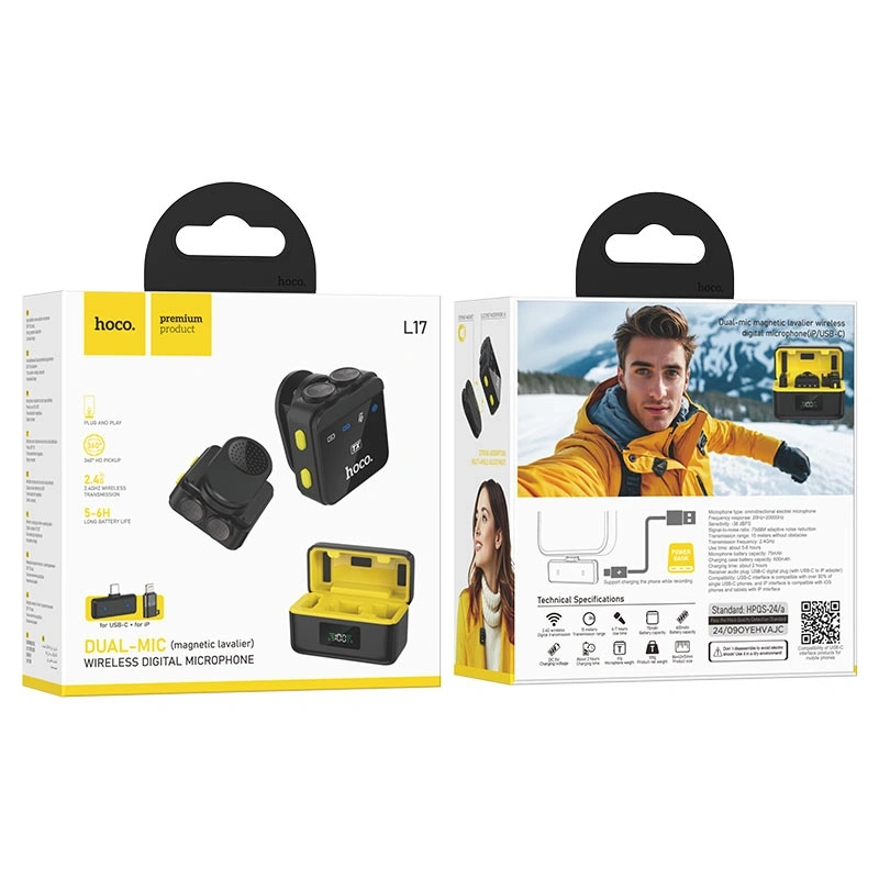 The compact charging case keeps your microphones powered and ready, so you never miss a moment. Whether you're recording videos, live streaming, teaching, or hosting events, the HOCO L17 ensures professional-quality sound with effortless convenience.