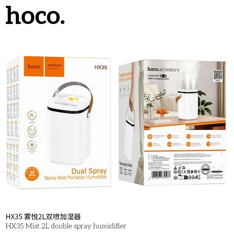 Transform your indoor environment with the HX35 Mist 2L Double Spray Humidifier, designed to improve air quality, reduce dryness, and create a more comfortable living space. With its dual-nozzle misting system, this humidifier delivers powerful and consistent moisture output, helping you breathe easier and maintain healthy skin.