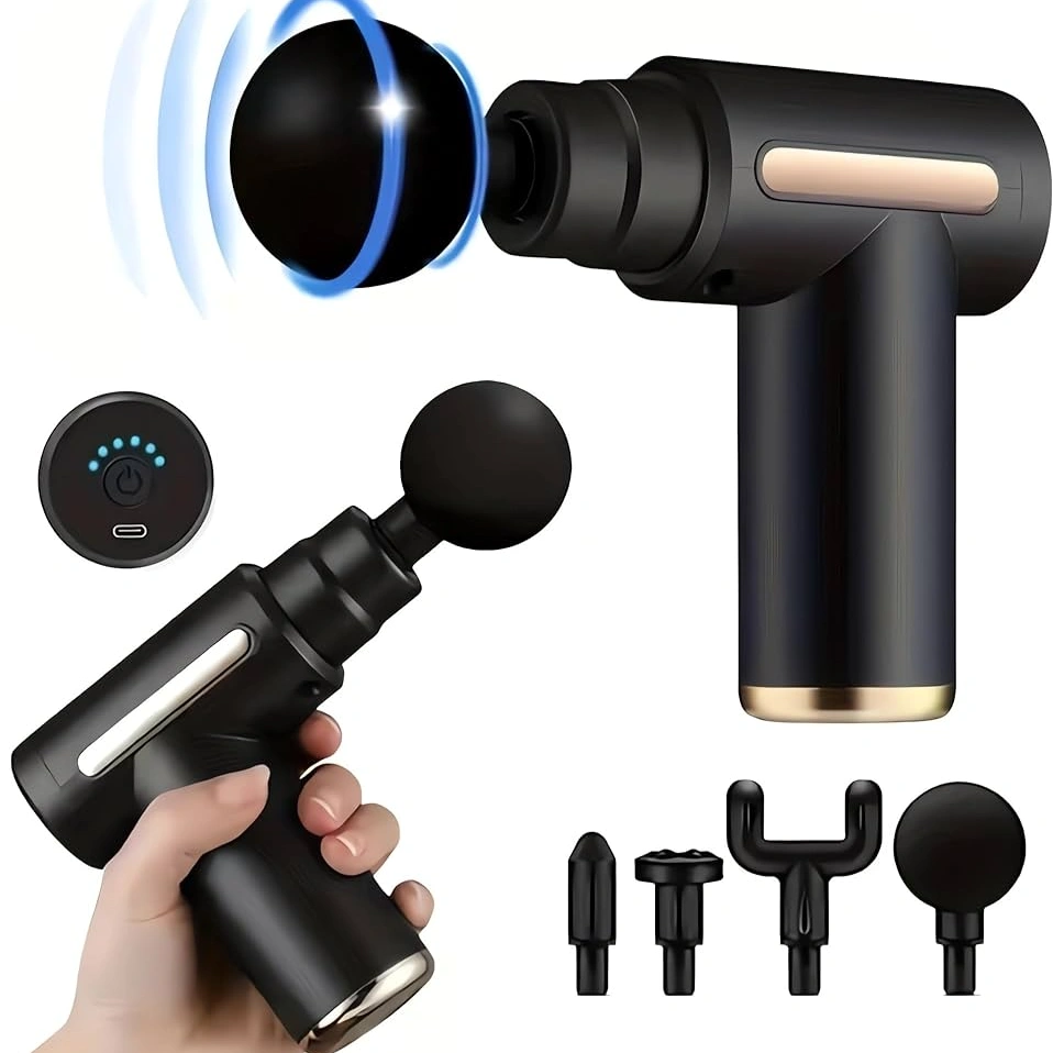 This portable and durable massage gun delivers powerful percussive therapy to relax sore muscles, improve blood circulation, and accelerate recovery — whether at home, the gym, or on the go. Compact, lightweight, and built to last, it features multiple speed settings and interchangeable heads for targeted relief and customized comfort. Perfect for athletes, fitness lovers, and anyone needing quick muscle relaxation.