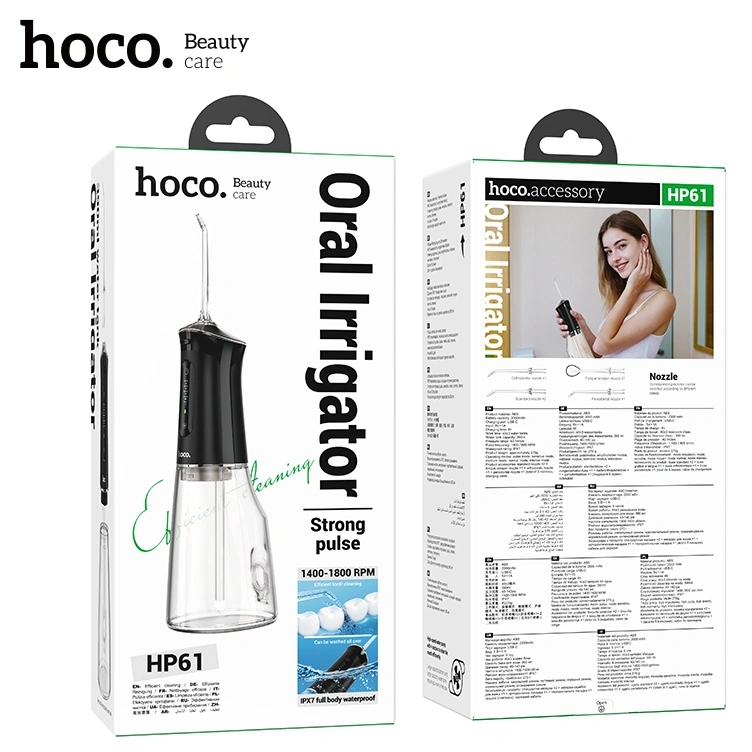 Upgrade your oral care routine with the Hoco HP63 Portable Oral Irrigator, a powerful water flosser designed to deliver deep cleaning between teeth and along the gumline. This advanced dental care device helps remove plaque, food particles, and bacteria more effectively than traditional brushing alone, giving you fresher breath and healthier gums every day.