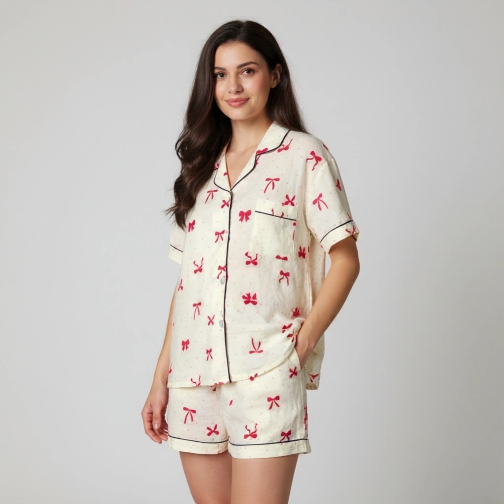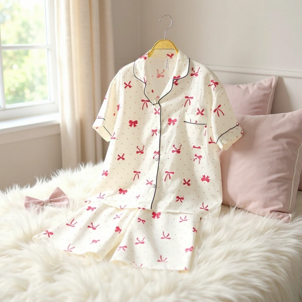 Set of 3 Bow Printed Pajamas Set